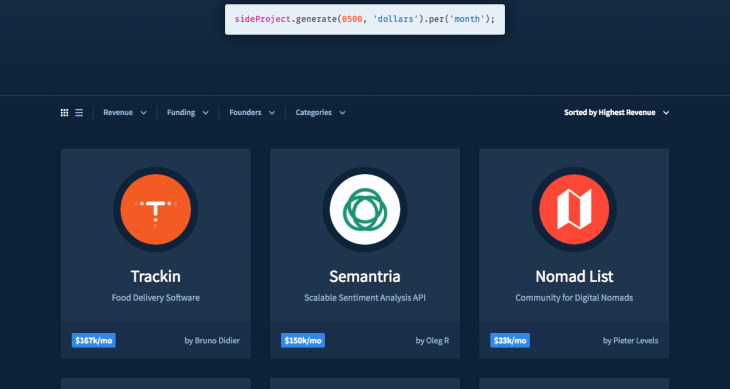 Indie Hackers is a website that profiles independent developers who have made profitable software projects, usually without raising any money. These projects make anywhere from a few hundred dollars a month to more than $100,000 as in the case with park.io, one of the services profiled by Indie Hackers.
