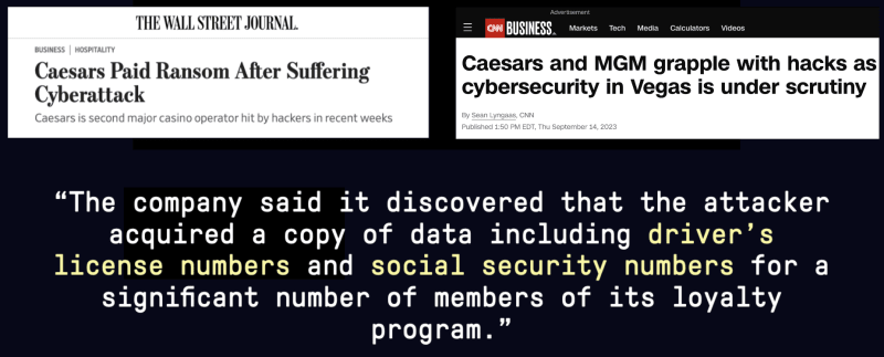 Companies like MGM and Caesars spend millions of dollars on firewalls, SIEMs, HSMs, and a whole smorgasbord of cybersecurity tools and yet, they can’t protect your social security number.
