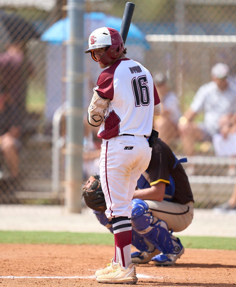 Parker Byrd during the WWBA World Championship at Roger Dean Stadium Complex on Oct. 7, 2021, in Jupiter, Florida. source: AP In the summer of 2022, Byrd’s legs were cut by a boat propeller, resulting in losing his right one. He had 22 surgeries in a 45-day window, proving that recovery was going to be a long road. In December of that same year, he received his prosthetic leg. 19 months later, he was able to walk up to home plate to swing.