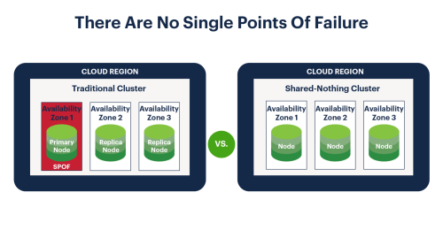 - Shared-Nothing Properties enable your database to make forward progress without any centralized master or coordinator.