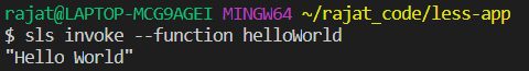 $ sls invoke --function helloWorld