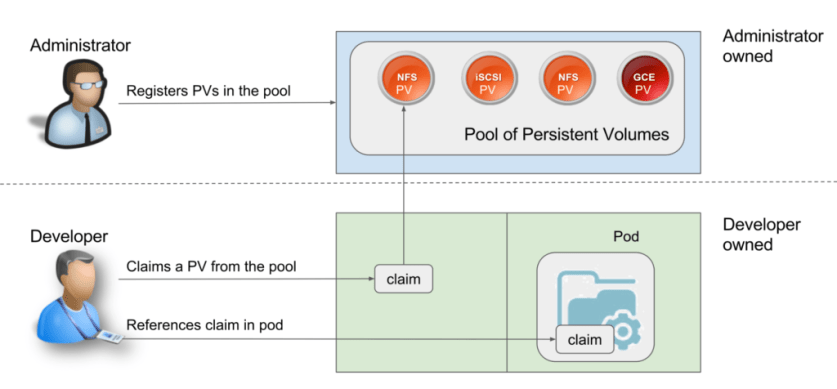 Persistent Volume Claims (PVC), on the other hand, are requests for the storage, i.e. PVs. With PVC, it’s possible to bind storage to a particular node, making it available to that node for usage.