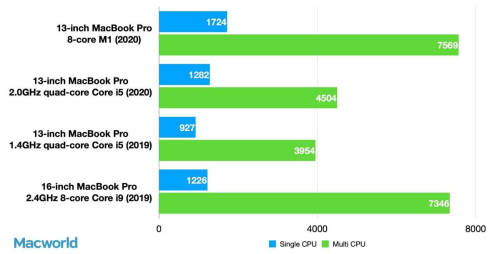 Macbook Pro Geekbench 5 Performance Benchmarks. Source: Macworld