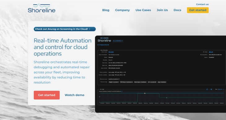 The company Shoreline orchestrates real-time debugging and automated repair across fleets. Shoreline makes it easy to define metrics, alarms, actions, and bots from the CLI that take action like draining and terminating nodes tagged for retirement or finding TLS certificates that are close to expiring. For unknown issues, Shoreline lets you debug across every pod from a single CLI rather than SSHing pod-by-pod, like running a command to grep for errors.