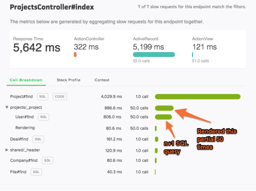 With basic APM tools, you have to wait until the performance issue is reflected in a customer’s journey on your website, and only after several traces you can detect that there’s a bottleneck, and you will have to investigate to find what causes this bottleneck. This kind of reactive monitoring is important, as real-time problems will always arise, even in areas completely out of the developer’s control such as data centers and cloud servers. However, the detective work of trying to identify what causes the bottlenecks is not necessary. Scout APM not only allows you to detect and handle issues with constant monitoring, but it also empowers you to pinpoint a single line of code or a single SQL query that causes the performance issue. Scout gives you the fastest path to a slow line of code.