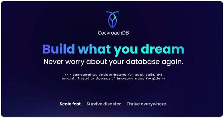 Now, in 2021, CockroachDB is a distributed database designed with Kubernetes architecture in mind. CockroachDB uses regular SQL and scales by automatically distributing data and workload demands. Their databases survive machine, datacenter, and region failures, and provide guaranteed ACID compliant transactions.