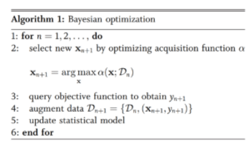 Bayesian optimization algorithm, from Taking the Human Out of the Loop: A Review of Bayesian Optimization by Shahriari et. al.