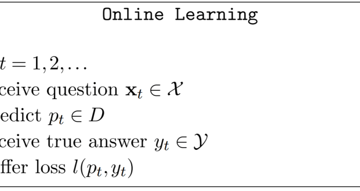 Formally, online learning is the process of answering a sequence of questions given knowledge of the correct answer to previous questions. Opposed to the classic offline machine learning, where all data points are available at training time, in online learning, data points come in sequences – we are only exposed to one data point at a time.