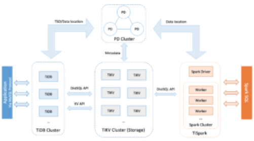 TiSpark is optimized for complex OLAP queries. Just like TiDB, TiSpark is also a stateless compute layer that communicates with TiKV, however it’s designed to handle complex OLAP queries, and communicates using Spark SQL.