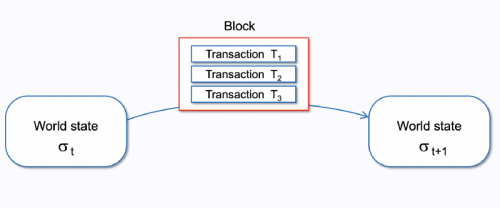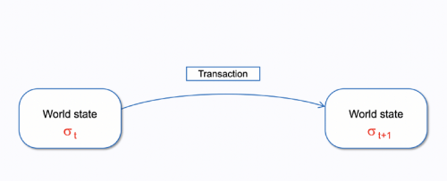 Ethereum’s virtual machine has a state transition function[3] which abides by a deterministic mathematical function: given an input, it will produce a deterministic output for the state. This state transition function is triggered by transactions being executed.